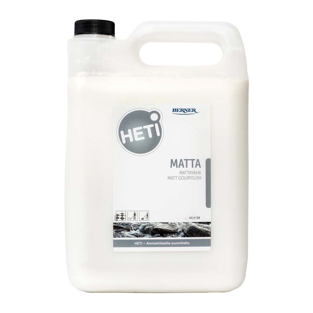 HETI Matta lattiavaha soveltuu kaikkien vahattavien pintamateriaalien paikka- ja perusvahaukseen. Tuote kestää hyvin mekaanista ja kemiallista kulutusta, muun muassa käsihuuhteita.