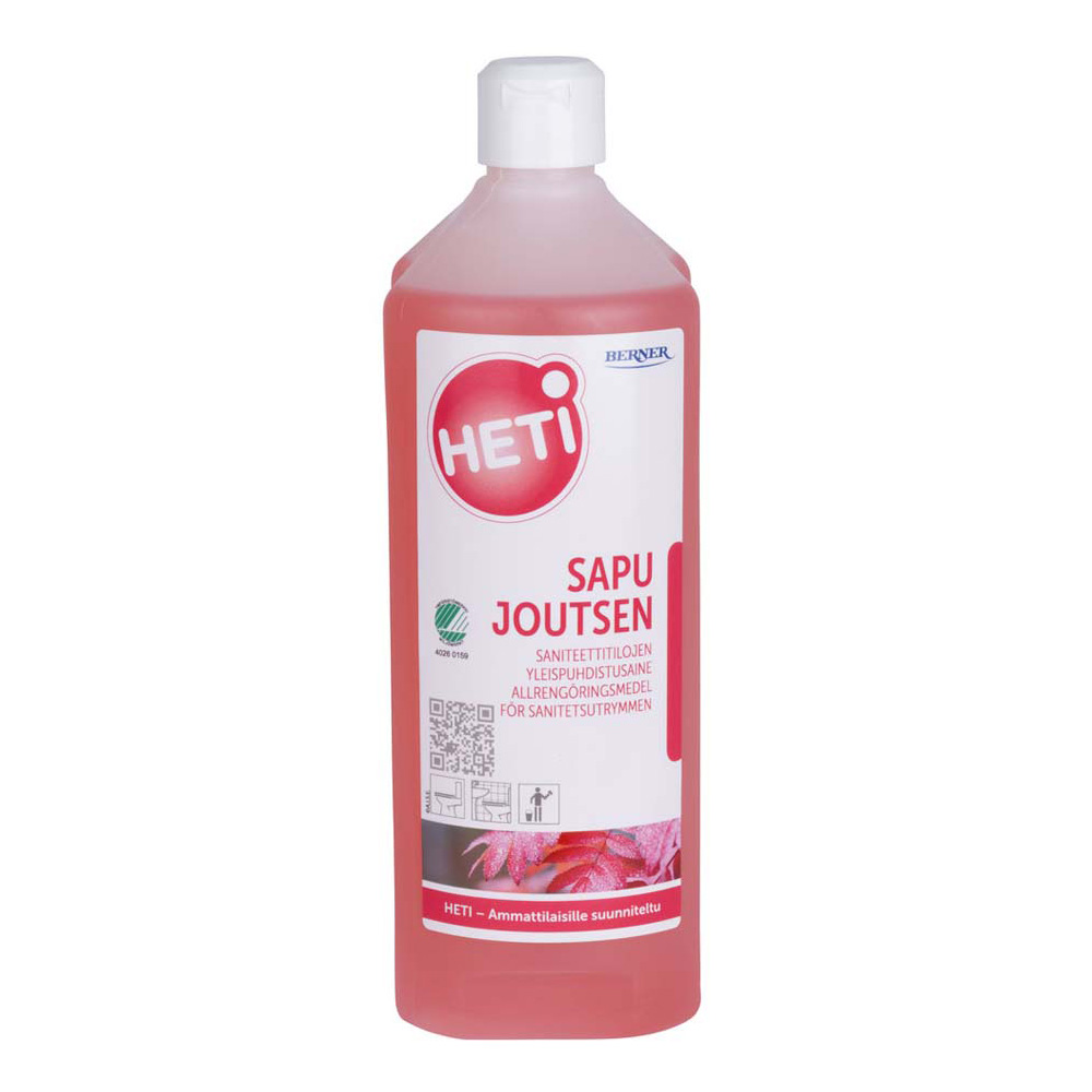 Hajustettu HETI Sapu Joutsen soveltuu saniteetti- ja saunatilojen päivittäiseen puhdistukseen. Säännöllisesti käytettynä HETI Sapu Joutsen ehkäisee saostumien muodostumisen ja poistaa tehokkaasti ihorasva- ja saippualikaa. Tuotetta voidaan käyttää useammille kosteissa tiloissa esiintyville pintamateriaaleille kuten keraamisille laatoille, posliini-, lasi- ja teräspinnoille. HETI Sapu Joutsenella on Joutsenmerkki.