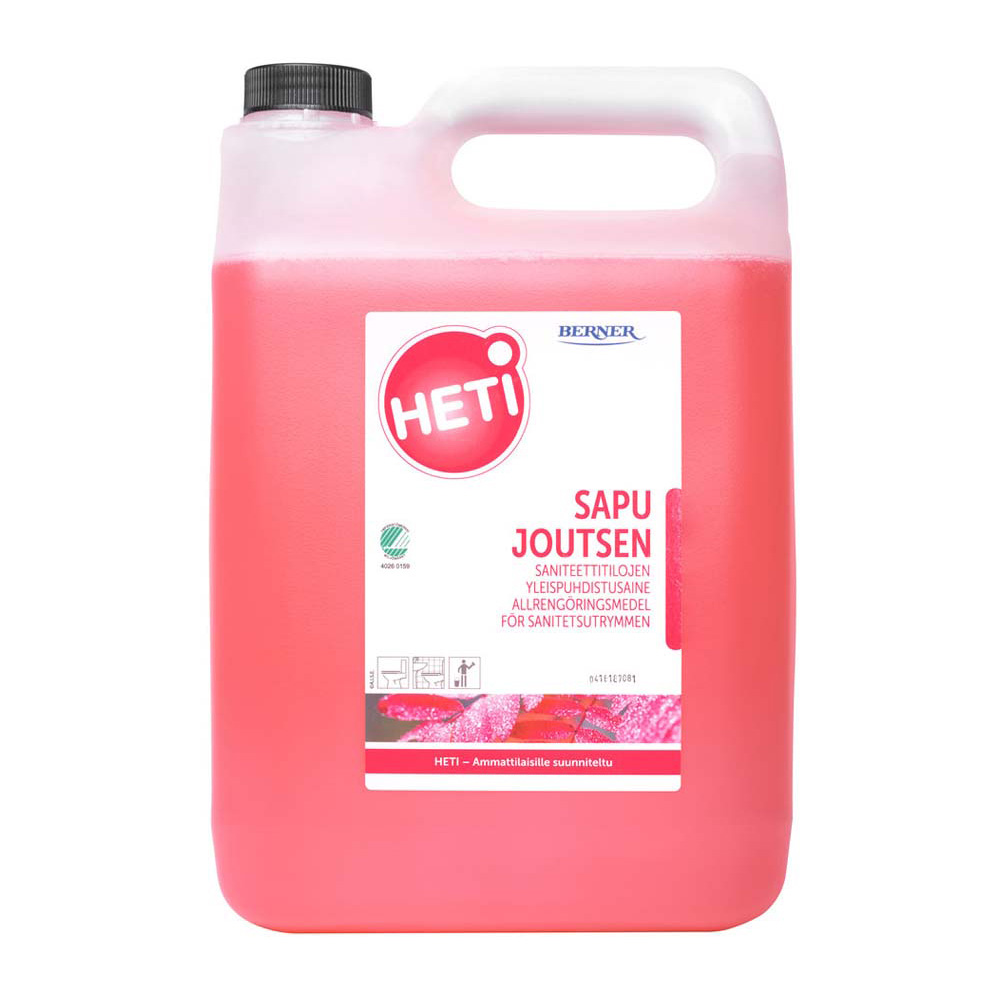 Hajustettu HETI Sapu Joutsen soveltuu saniteetti- ja saunatilojen päivittäiseen puhdistukseen. Säännöllisesti käytettynä HETI Sapu Joutsen ehkäisee saostumien muodostumisen ja poistaa tehokkaasti ihorasva- ja saippualikaa. Tuotetta voidaan käyttää useammille kosteissa tiloissa esiintyville pintamateriaaleille kuten keraamisille laatoille, posliini-, lasi- ja teräspinnoille. HETI Sapu Joutsenella on Joutsenmerkki.
