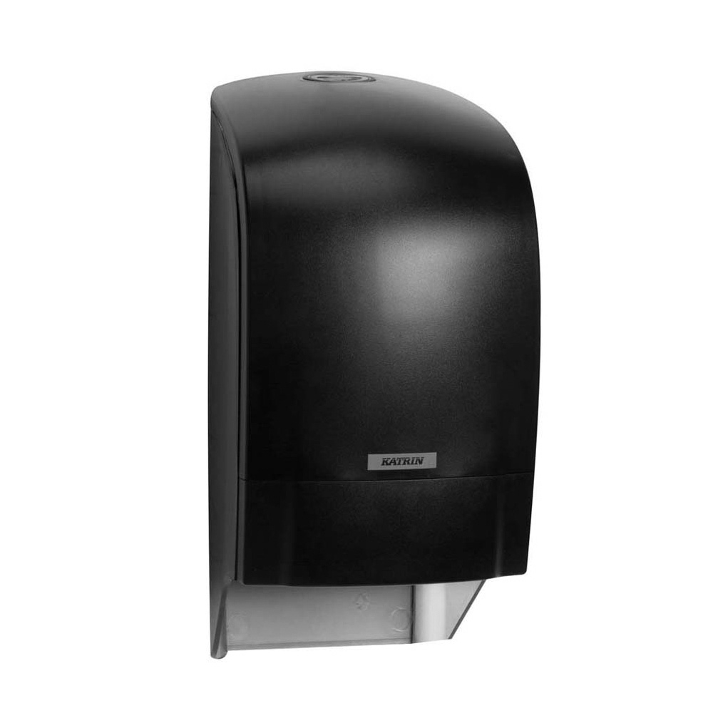 Tyylikäs annostelija Katrin System – wc-papereille. Vetoisuus 2 rullaa. Lukitus avaimella tai ilman. Saumaton annostelu rullan pudotusjärjestelmällä ja säädettävällä rullan pysäytyksellä. Helppo ja nopea täyttää. Voidaan täyttää, vaikka toinen rulla on vielä käytössä; näin paperia on aina saatavilla ja rullat saadaan aina käytettyä loppuun. Mustat Katrin- annostelijat on valmistettu 100% kierrätysmuovista. 102 ME/lava, x mm