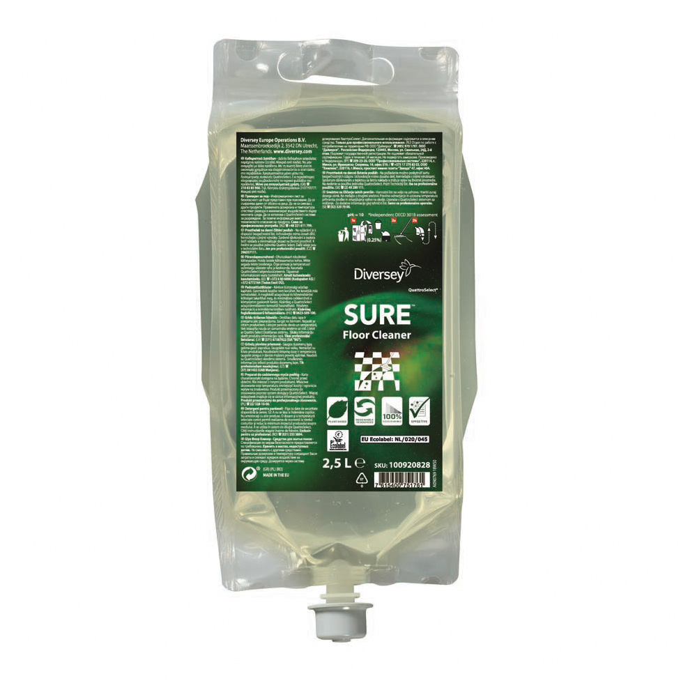 SURE Matalavaahtoinen yleispuhdistusaine on osa ainutlaatuista kasvipohjaista, 100 % biohajoavaa ammattikäyttöön tarkoitettua tuotesarjaa. Heikosti emäksinen SURE Matalavaahtoinen yleispuhdistusaine on tehokas, mutta turvallinen. Se soveltuu kaikkien vettä sietävien kovien pintojen puhdistamiseen käsi- ja konemenetelmiin. Ympäristömerkitty (EU-Kukka).