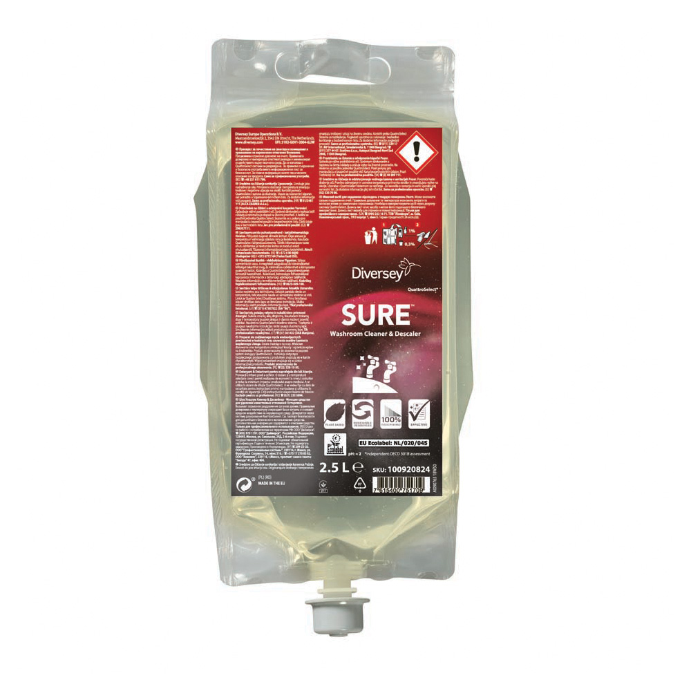 SURE Saniteettitilojen puhdistus- ja saostumienpoistoaine on osa ainutlaatuista kasvipohjaista, 100 % biohajoavaa ammattikäyttöön tarkoitettua tuotesarjaa. Hapan SURE Saniteettitilojen puhdistus- saostumienpoistoaine on kehitetty päivittäiseen puhdistukseen kovan veden alueille sekä jaksottaiseen saostumien poistoon/ ehkäisemään saostumien syntymistä pehmeän veden alueilla. Ympäristömerkitty (EU-Kukka).