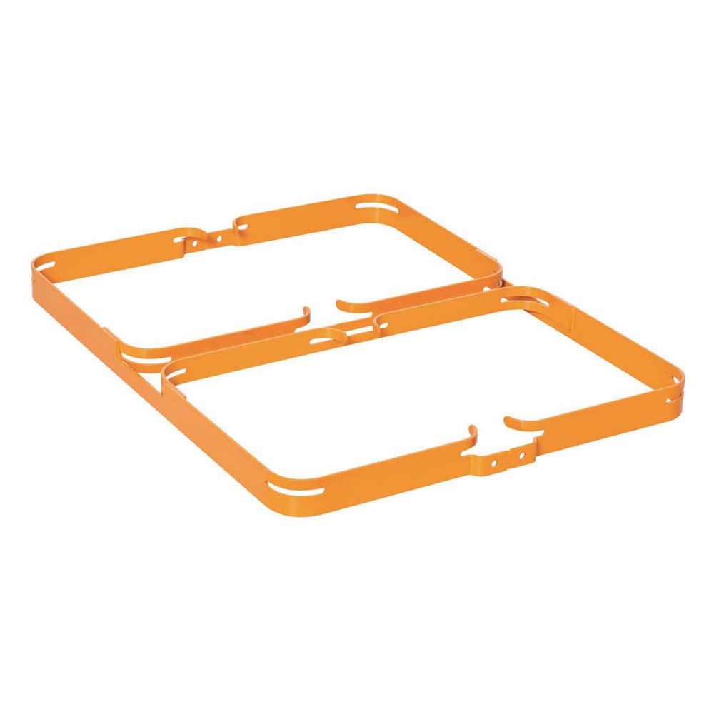Metallinen, oranssi yhdistetty sanko- ja jäetsäkkitelinneen kehikko TASKI Nano-siivousvaunuun. Kehikkoon mahtuu esim. joko 4 siivoussankoa tai kaksi sankoa ja 150 litran jätesäkki.